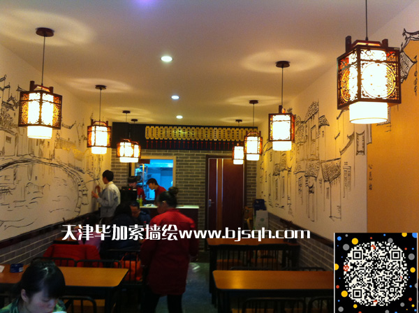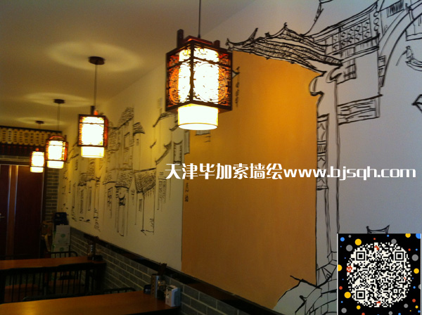 古香古色的裝修風(fēng)格配以江南建筑風(fēng)格的墻繪圖案,營(yíng)造出輕松、愉悅、小資情調(diào)的就餐環(huán)境。